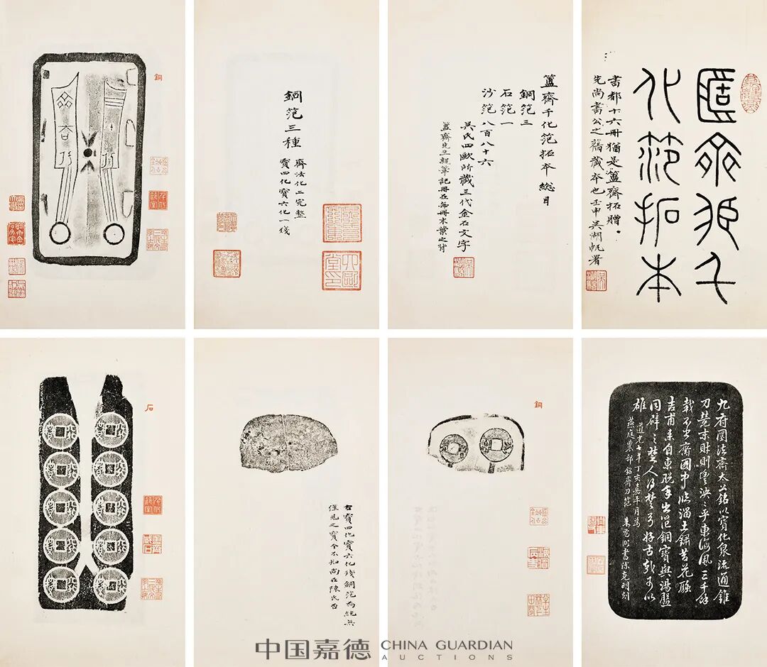 “嘉树堂藏金石小品”专场涵嘉树堂藏金石杂拓64件,囊括西周青铜重器、兵戈玺印、镜鉴兵符、先秦泉范、权量诏版、汉魏古砖、南朝石刻、五代造像、宋元钞版、犀角、徽墨、刻竹各类,内容极为丰富。