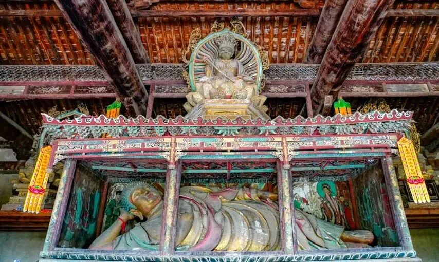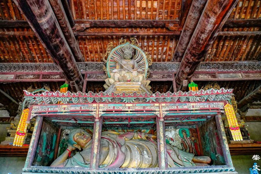▲金光塔正在大放金光(PS:金光塔也是著名妖精奔波儿灞和灞波儿奔出场的地方,图片截图自1986版《西游记》)广胜寺飞虹塔始建于明代正德年间,是目前全国最精美、保存最完好的琉璃塔是“广胜三绝”第一绝。在水神明应王殿内四壁绘有近二百平米的元代壁画,尤以南壁东一幅戏剧壁画著称于世,被人们誉为广胜寺文物的第二绝!它是目前全国唯一保存的大型元代戏剧壁画。洪洞县广胜寺镇石桥村北,大殿坐北朝南,面阔三间、进深六椽,单檐悬山顶。梁架为六架椽屋四椽栿对前乳栿通檐用三柱,柱头斗栱五铺作单抄单下昂。殿内四壁存壁画约25平方米,为泥皮覆盖。资寿寺内现存大型元明壁画,堪与名满华夏的永乐宫壁画相媲美。以十八罗汉为代表的明代彩塑更是匠心别具,独树一帜,具有极高的艺术价值。资寿寺现为国家级重点文物保护单位,并被载入了《中国名胜词典》。作为千年古刹,资寿寺的艺术成就主要表现在三个方面:一是壁画。资寿寺的壁画既有外来艺术的痕迹,又有强烈的本土风格,汇聚了唐宋元明历代不同特征的大量壁画。二是明代彩塑。资寿寺有大小塑像150余尊,其中大的3米有余,小的不足10厘米,无论是表情动作、衣饰着装,还是着色用彩都堪称明代彩塑艺术的上乘之作。三是药师佛殿的藻井。药师殿殿顶的装饰堪称一绝,尤其是正中的两组藻井,一大一小,一方一长。其中大的是由256组斗拱,分四层向上叠涩收缩而成,中间雕刻鎏金八卦蟠龙;小的由100组斗拱分两层叠涩而成,中间为二龙戏珠。设计奇巧,制作精细,色彩明艳,具有极高的艺术价值和审美价值。坐落于山西太原,由主馆和四角辅楼组成,主馆造型如斗似鼎,四翼舒展,体现古人对建筑“如鸟斯革,如翚斯飞”的审美,亦有丰收富足、安定吉祥的寓意。山西博物院馆藏文物约40万件,其中新石器时代陶寺遗址文物、商代方国文物、西周时期晋及三晋文物、北朝文物、石刻造像、山西地方陶瓷、金元戏曲文物、明清晋商文物等,颇具本地特色。