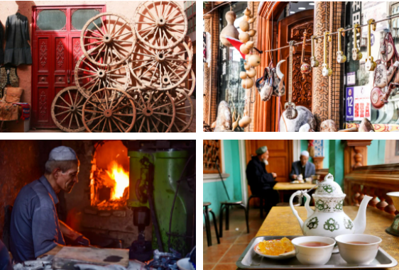 《还珠格格》中出名的香妃,把真实的自己葬在了这里;古老的佛教在这里留下痕迹;西域三十六国之一的疏勒国宫城(盘橐城)也在这里,班超曾于此经营西域,荡平匈奴势力,完成了统一西域的宏伟大业……但其中,最重要的一块,是喀什老城。它代表了这个城市古老的过去,平静的现在,如果幸运,它必将代表未来。喀什古城,原称疏勒,经历了两千多年风雨沧桑,依旧鲜活如初。走进喀什老城,你会有一种时光倒流的感觉,仿佛瞬间穿越回到张骞出使西域的中古世纪。它是中国唯一的以伊斯兰文化为特色的迷宫式城市街区,纵横交错的街巷、土木砖木结构的民居、街楼墙面上的雕砖……漫步其中,犹如置身新疆维吾尔族民俗风情的生动画卷。《追风筝的人》曾在这里取景,喀什噶尔迷人的双眼,为你千千万万遍。古城之外,还有新疆最大的清真寺——艾提尕尔清真寺。这里有造型柔和静美的宣礼塔、巨大的清真言牌匾。白天,可以坐在门前的广场看鸽群、晒太阳;傍晚时分,可以聆听礼拜,唱经声空灵悠远。当然,来喀什,美食也是不容错过的。正宗的烤肉(羊肉串)、烤全羊、抓饭、拉条子、那仁、马肠子、血肠子、面肺子……光名字都能凑一出《报菜名》!从喀什出发,沿被誉为“群山间绸带”的314国道一路行进,高原、雪峰、冰川、湖泊、草原、湿地……大自然将这些风景一股脑儿地藏进这片土地,任由它将它们在你的眼前次第展开。比如,我国最低海拔的冰川——奥依塔克冰川。源于古突厥语的奥依塔克,有着世界上壮观且罕见低纬度现代冰川,集雄、奇、雅、幽、险于一体,被无数探险家称为“西域第一生态景观”。比如,“西北百景”之一的白沙湖。它海拔3300米,蓝天、白云、雪山、湖面,组成了一幅纯净的画面,远处的昆仑三雄公格尔峰、九别峰和慕士塔格峰,显得蔚为壮观。