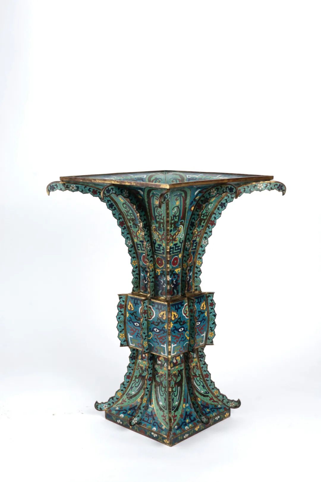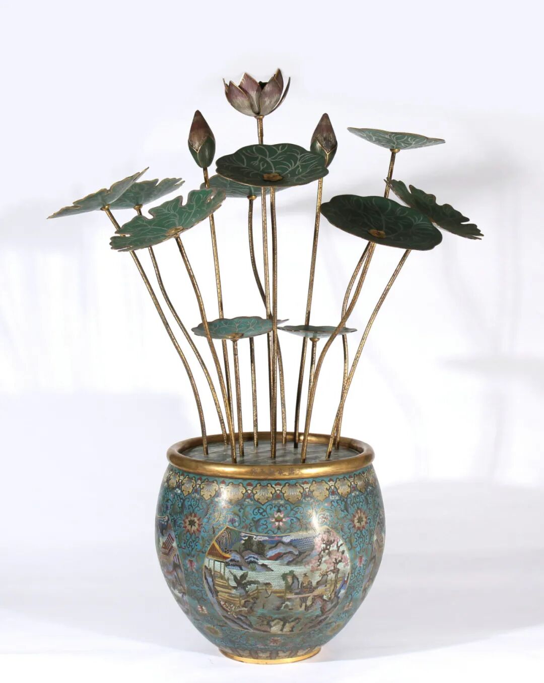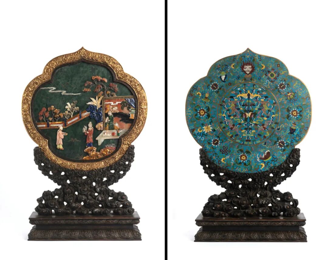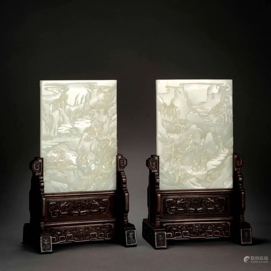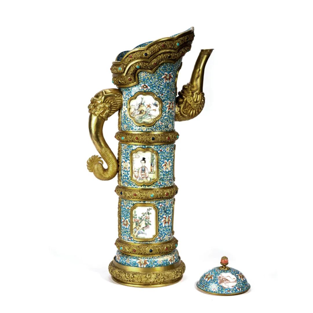 Lot 7018 掐丝珐琅镶玉大吉瓶规格:20 x 11 x 38cm起拍价格:800 美元 Lot 7019 铜鎏金无量寿佛像规格:7.5 x 8 x 18.5cm起拍价格:3,000 美元 Lot 7021 青灰玉鹿摆件规格:20 x 12 x 16cm起拍价格:800 美元 Lot 7055 掐丝珐琅折沿盘规格:D 39.5cm起拍价格:400 美元 Lot 7105 白玉锦鲤纹盖瓶 规格:11.5x 5 x 23cm起拍价格:800 美元 Lot 7170 掐丝珐琅方觚规格:35 x 35 x 53cm起拍价格:800 美元 Lot 7235 白玉插屏一对规格:18 x 12 x 30cm起拍价格:800 美元 Lot 7273 白玉鸳鸯笔架规格:16 x 10 x 9cm起拍价格:800 美元 Lot 7080 铜鎏金观音像规格:H 48cm起拍价格:800 美元 Lot 7103 白玉炉规格:11 x 9.5cm起拍价格:800 美元 Lot 7106 白玉高士图笔筒规格:13.2 x 14.3cm起拍价格:800 美元 Lot 7140 青花百寿纹棒槌瓶规格:H 50cm起拍价格:300 美元 Lot 7168 掐丝珐琅镶百宝插屏规格:40 x 11 x 60cm起拍价格:800 美元 Lot 7222 掐丝珐琅多穆壶规格:26 x 13 x 52cm起拍价格:800 美元 Lot 7243 白玉插屏规格:26.5 x 16 x 37.5cm起拍价格:800 美元 Lot 7169 掐丝珐琅盆栽规格:42 x 106cm起拍价格:800 美元 Lot 7173 翡翠甪端炉规格:10 x 6.5 x 11.5cm起拍价格:800 美元 Lot 7185 黄花梨箱规格:26 x 16 x 9cm起拍价格:800 美元