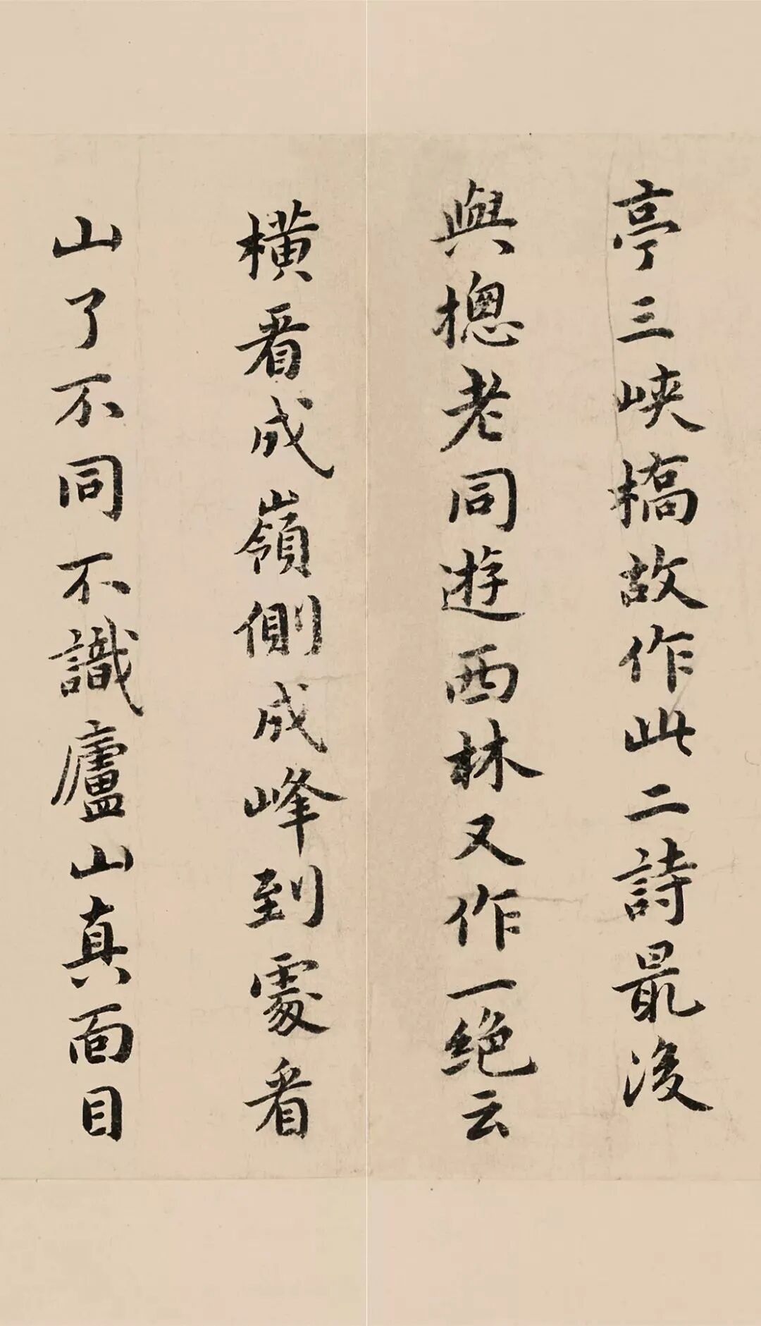 【15】亭、三峡桥,故作二诗。最后与总老同游西林,又作一绝云:“横看成岭侧成峰,到处看山了不同。不识庐山真面目,