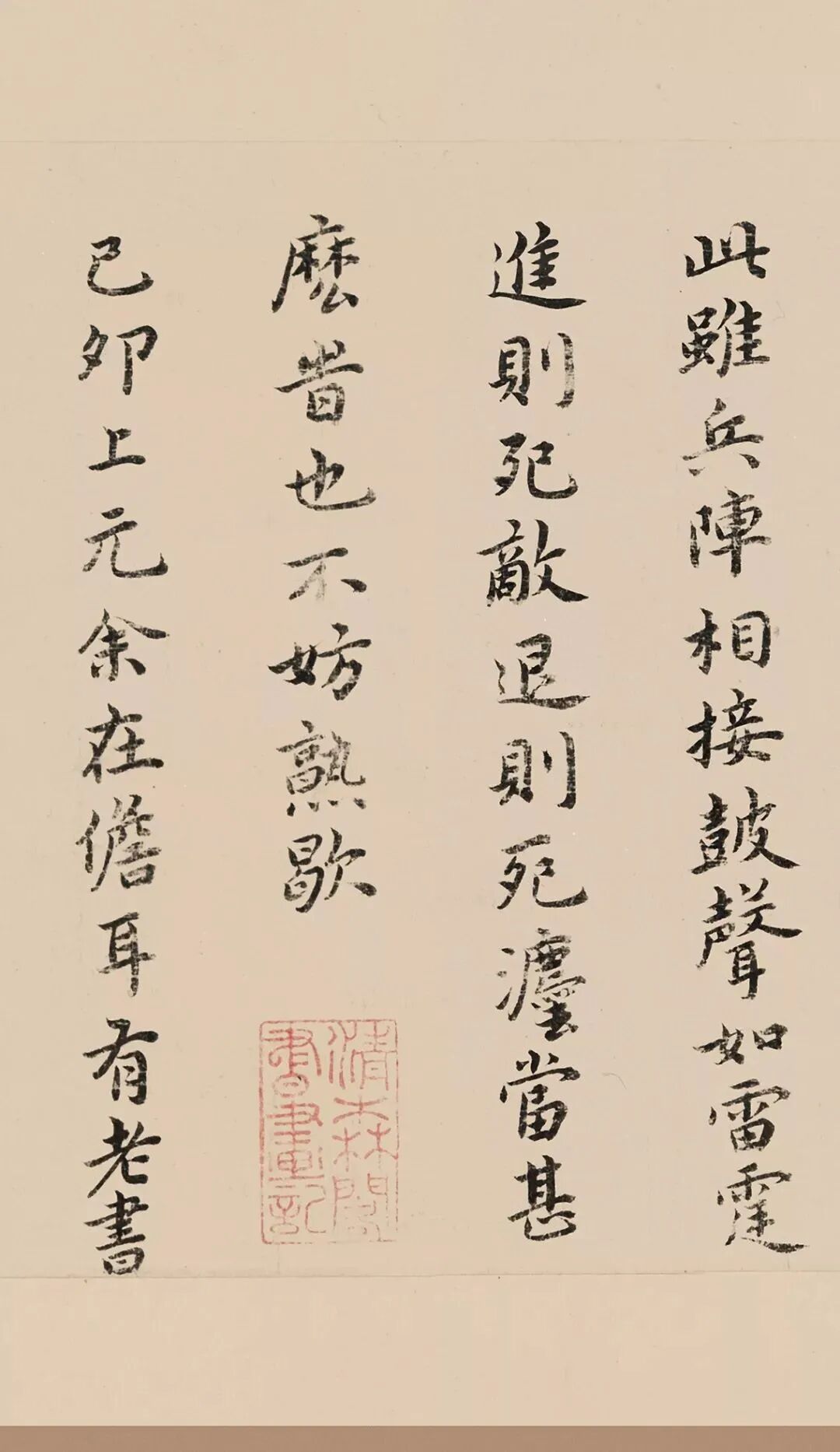 【18】此,虽兵阵相接,鼓声如雷霆,进则死敌,退则死法,当恁么时也不妨熟歇。《书上元夜游》己卯上元,余在儋耳,有老书