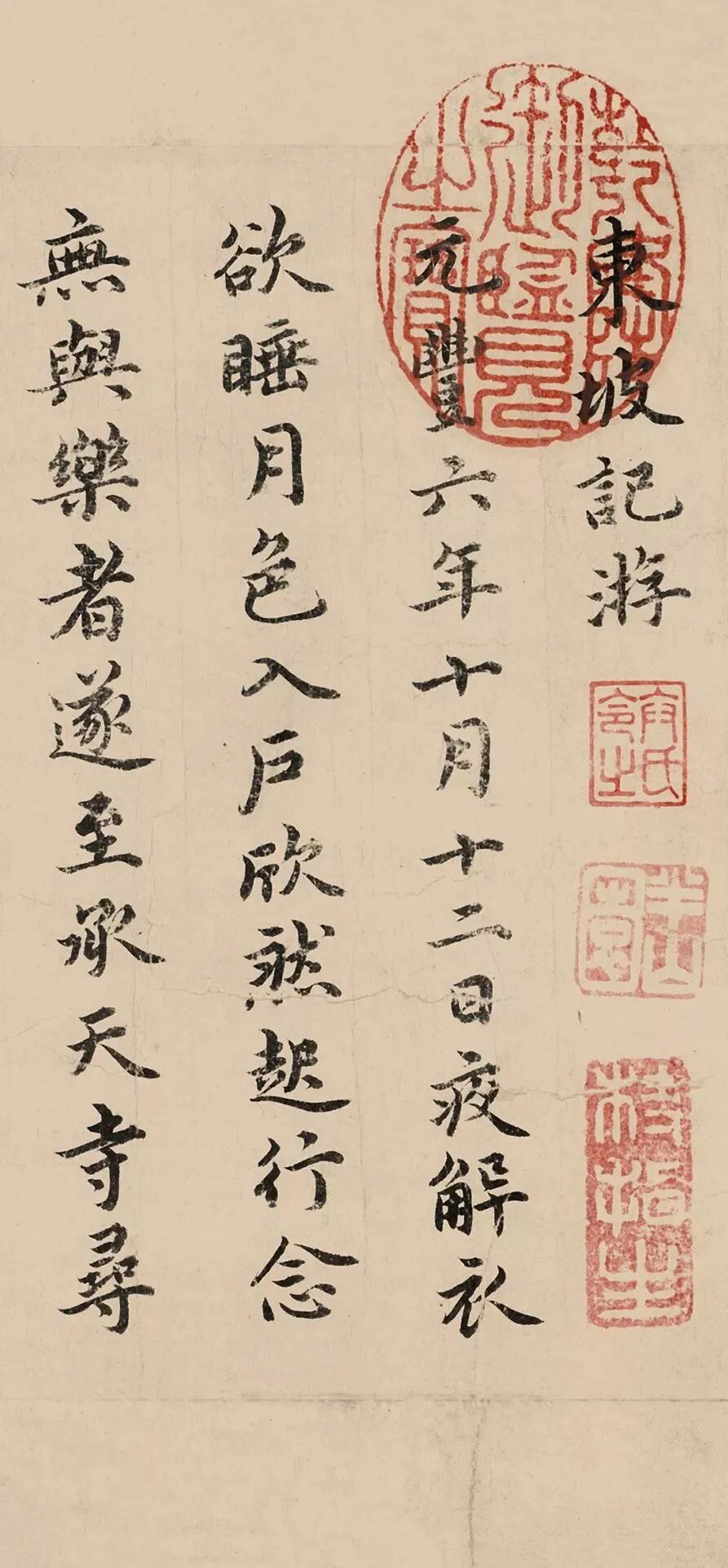【1】《东坡记游》元丰六年十月十二日夜,解衣欲睡,月色入户,欣然起行。念无与为乐者,遂至承天寺寻