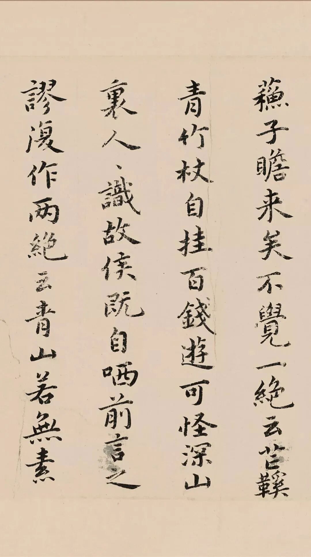【11】“苏子瞻来矣!”不觉作一绝云:“芒鞋青竹杖,自挂百钱游。可怪深山里,人人识故侯。”既而哂前言之谬,复作两绝句云:“青山若无素,