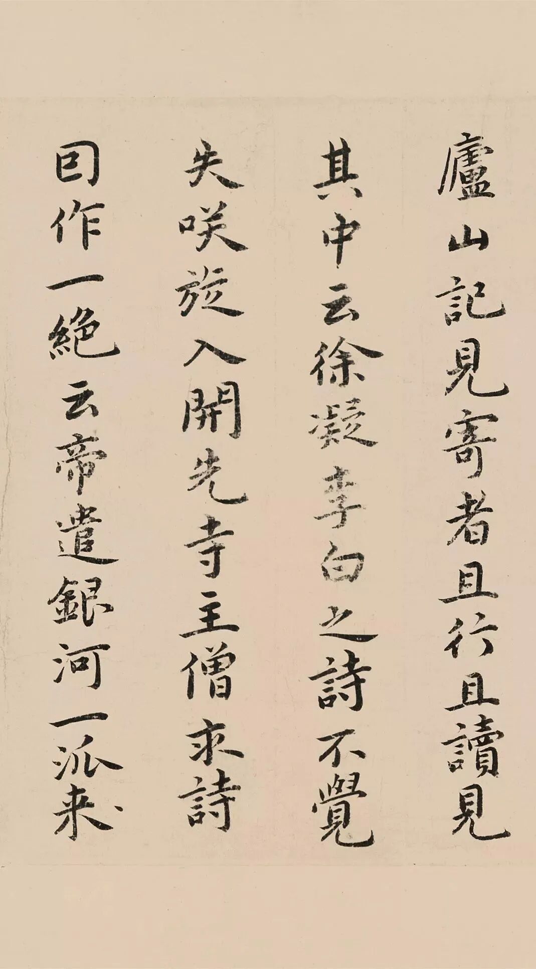 【13】《庐山记》见寄者,且行且读,见其中有云徐凝、李白之诗,不觉失笑。开先寺主求诗,为作一绝云:“帝遣银河一派(来,点去)