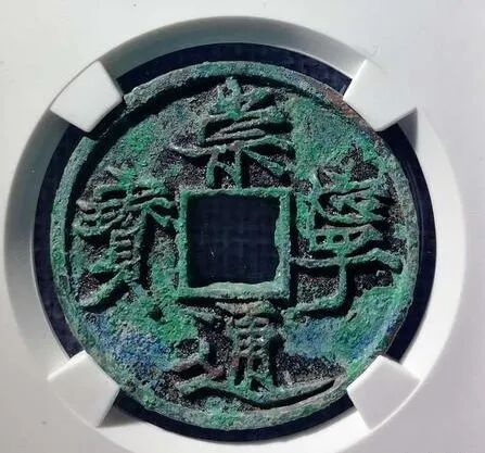但是,一些商家和藏友对于版别的认知程度却参差不齐,甚至一些评级公司入盒的版别评定也有出入。崇宁通宝的版别一定要认准,否则很容易高价买到不是好版的。从另一个角度讲,如果你对版别认知非常准确,在目前的收藏市场上,捡漏好版别是非常有可能的。我们就来详解一下崇宁通宝的各个热门版别,共藏友们在收藏过程中学习借鉴。遒劲版崇宁通宝是目前的大热门,市场价格也上升比较快,好品相者已经到千元左右,品相弱者也在中百的样子了。对于遒劲版的特征描述,通常是“文字遒劲”、“转折有力”等等,跟没说一样,让藏友很能把握。◆“崇”字,山部第一笔似撇状,示部第二笔起笔挑起。◆“宁”字,仰宁,也就是整体向右倾斜,宝盖部第二笔竖直,丁部起笔挑起。◆“通”字,坐车部长点,第二笔与第三笔平行,捺转折明显。◆“宝”字,宝盖部第二笔与横为直角,王部末笔为向上弧形,贝部第一点为撇状,第二笔为顿点状。藏友注意:以上特征,必须全部具备,方为标准遒劲版崇宁通宝,如有一项或几项不具备,则不是遒劲版。
