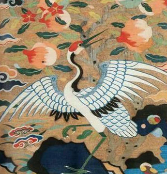 这件”缂丝云鹤花卉纹椅披“可以说是一件缂丝珍品,因为现存的缂丝文物并不是很多,而且它跟民间的缂丝完全不同,其用来是用金银线编织而成,”缂丝云鹤花卉纹椅披“总长有1.64米,宽0.64米,这种长度和宽度的缂丝按现在的价格算都是价值不菲,更何况是300多年前的康熙御制物品。在图案上,这件缂丝作品也堪称是一件艺术品,这件椅披由云雾和祥鹤构成,色彩璀璨艳丽,其寓意具有意义。
