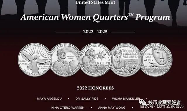 2021年6月,美国联邦铸币局宣布成立“杰出美国女性铸币计划”,计划中宣称,将在2022年至2025年,发行全新的25美分硬币,每年发行最多5款,以不同领域、族裔兼具多元化背景的美国杰出女性头像为图案。