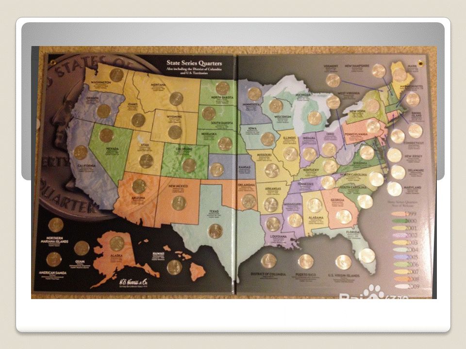 自1999年,美国开始发行面值为25美分的流通纪念币,首个主题为50个州,每年发行5枚,一共发行了10年,到2008年才全部发行完毕。