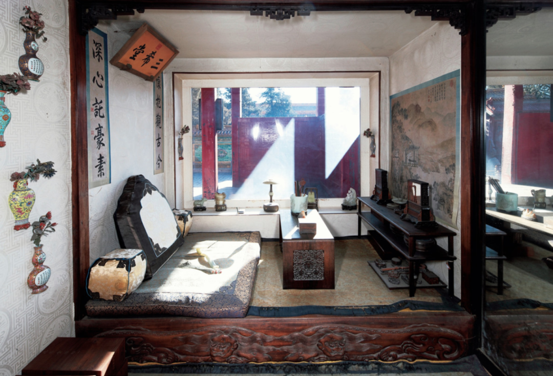 谁曾想,这次祖、父、孙三人的意外“同框”,足可以改变大清百年的历史。牡丹花落,碾做尘土,沉寂于圆明园。而弘历这朵飞花,扶摇腾起,飘入紫禁城。这朵飞花非比寻常,命理中似乎还有一场远在星辰之外的因缘。弘历生于辛卯(康熙五十年)、丁酉(八月)庚午(十三日)丙子(子时)。康熙初见弘历后,因对其喜爱有加,便寻来弘历的生辰八字请术师测算。身处封建时代的君主,不自然地落入到笃信命理运数的窠臼之中。术师表示未来的弘历资质极佳、聪慧睿智,健康多福且子嗣兴旺,家族香火绵绵。康熙对此深信不疑,更加盛意拳拳教授弘历。在康熙的内心,弘历不仅天生贵胄,命运礼数极佳,而且福泽绵长。有一次,康熙带着弘历木兰围猎。康熙张手搭弓,抬臂一箭射倒一只熊。康熙又命弘历上马,补上一箭。可负伤的熊忽然站起,向弘历扑来。弘历面对此景,全然不惧。好在康熙反应敏捷,回身补一枪,将熊再次击倒。事后,康熙皇帝感叹弘历命数极佳,能逢凶化吉,并回身对随侍的太妃说:“弘历的命运太矜贵厚重,会比我还有福气”。(“木兰从狝,命侍卫引射熊。上马,熊突起。上控辔自若。圣祖御枪殪熊。入武帐,顾语温惠皇太妃曰:“是命贵重,福将过予。”《清史稿·高宗本纪》)抛却胤禛的精心安排和弘历自身的运气,弘历之所以在众多皇孙中脱颖而出,也与他自身聪慧好学分不开。故宫三希堂前间内景,三希堂为乾隆皇帝的书房(图自张淑娴《三希堂的空间构思》)皇家人才辈出,竞争极为激烈,胤禛对弘历要求极其严格,开启了最强“鸡娃”模式。弘历尚年少时,胤禛为他觅得名师、庶吉士福敏进行启蒙教育。福敏为人刚正,授课严格负责,为弘历塑造了良好的学习习惯。在福敏的教诲下,弘历熟读《诗经》《尚书》《易经》《春秋》《戴氏礼记》等儒家典籍,并且开始阅读史部的典籍《史记》和《汉书》。