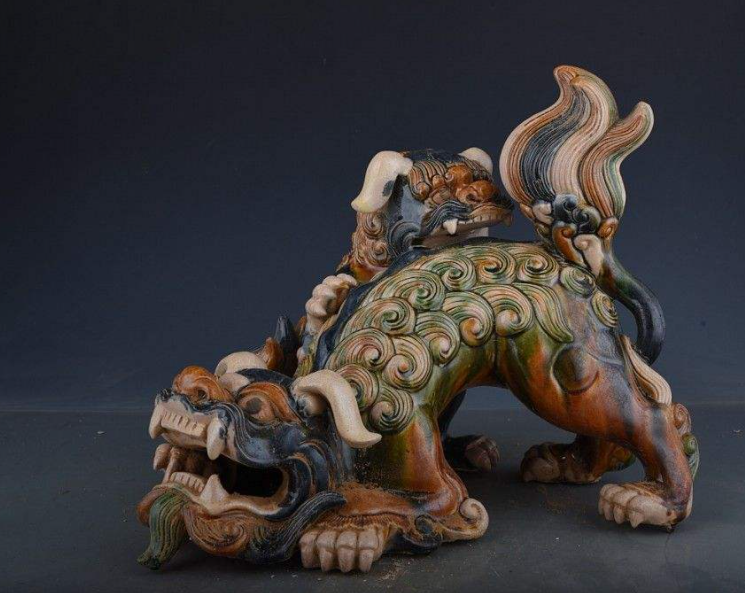 唐三彩子母兽