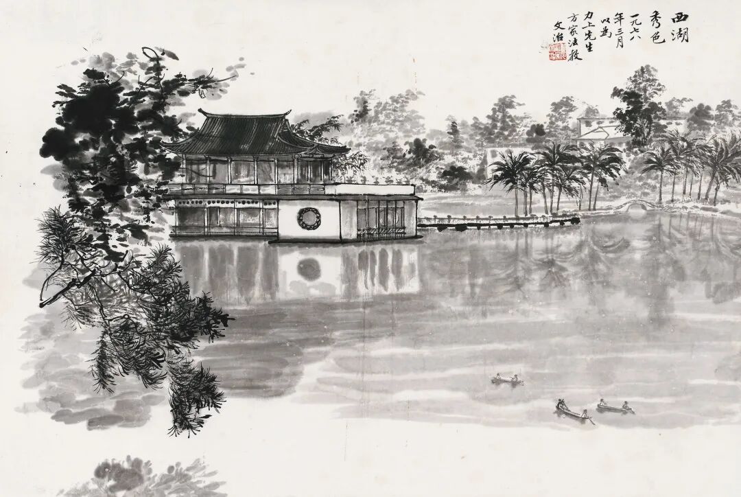 题识:西湖秀色。一九七八年三月以为力上先生方家法教,文治。