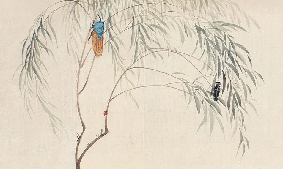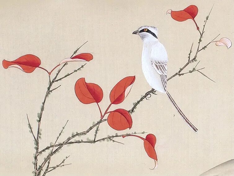 题识:扶蔬绿叶晓缤纷,似染潇湘水上云。何处飞来数声鸟,月明幽客梦中闻。东郊膏雨润扶犁,秃树槎牙叶正齐。何事省耕亡旧典,空劳此鸟一春啼。王母宴归西海上,空留青鸟羽参差。黄云苦竹江南霰,独立寒条岁晚时。壬戌五月,俞致贞画。