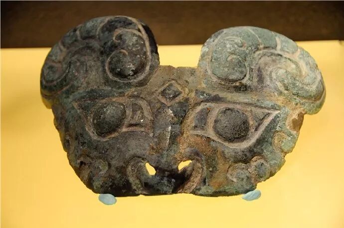 几何形互相勾连的雷纹为主纹,正中一对大椭圆形目。