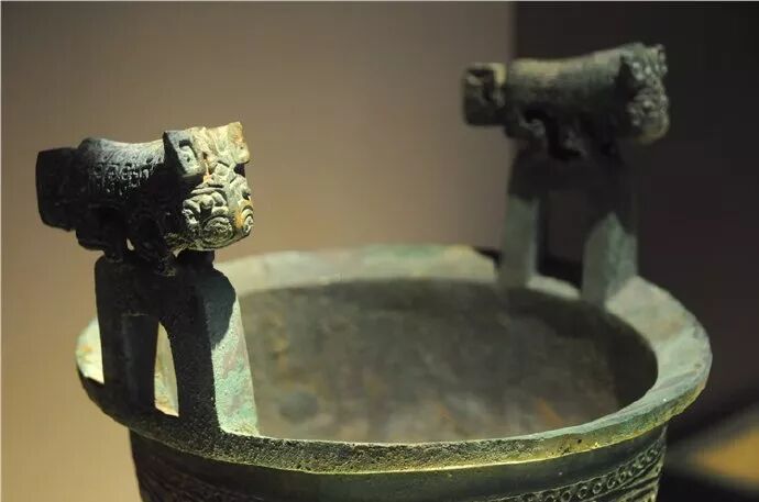 铙使用时,口朝上,柄管固定于插座之上,打击发音,有单铙和编铙之别。编铙有两件,三件、五件、十件四种配置,铙间有一定的音程组合关系,奏出乐音。乐响舞起,舞动乐伴,贵族上下均会蹈之舞之。巫觋从事巫术活动时乐舞更是必不可少。大型的青铜铙主要出土于长江中下游,集中于湘赣地区,过去多为零星出土,大洋洲科学发掘,成套集中,意义非同一般。青铜乐器铸造更为复杂,需要充分掌握铜器的发音原理,这批大型青铜乐器从另一个侧面反映了当地精湛的铸铜工艺。