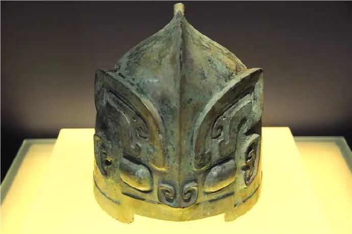 胄是作战时防护头颈部的用具。此胄铸造精致,表面光整,壁厚仅0.3厘米,戴之并不显笨重之感,乃兵器中之珍品。