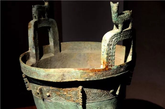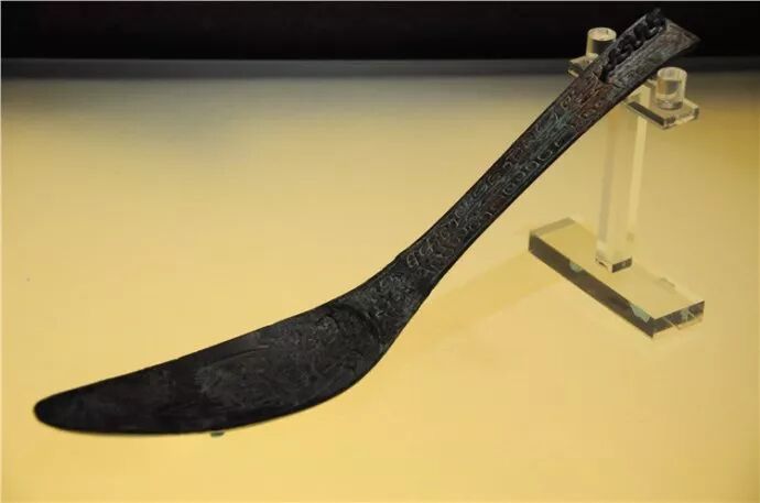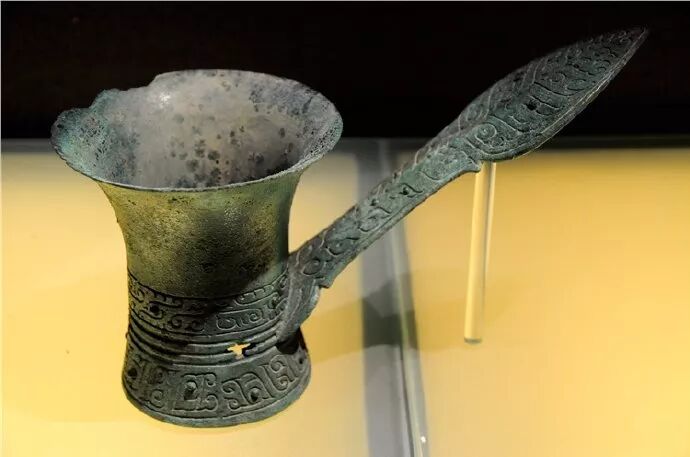 可与青铜罍配合使用。瓒杯形体饰一周云目纹。腹足交接处斜出圭状的尖首柄,饰云纹,其间二对凸目。其形奇异,以往未见此种器物。通俗地讲,瓒是在特殊场合使用的一种挹酒勺子,每当盛大的祭祀时,君主用瓒从罍等大型贮酒器种挹取鬯酒,然后缓缓地将酒注于地上,以祭享自己的祖先,此为裸礼。