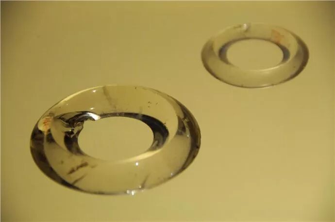 一组二只,琢成圆环,截面近菱形。一大一小,叠放嵌合,颇为奇特。商代水晶料材珍稀,外观晶莹剔透,存世罕见。由于水晶硬度大,琢制非常困难,雕成圆环,难度更大,而琢成二件形状如此,大小相合的套环就难上加难,珍贵无比。水晶套环表达的文化内涵还是未解之谜。