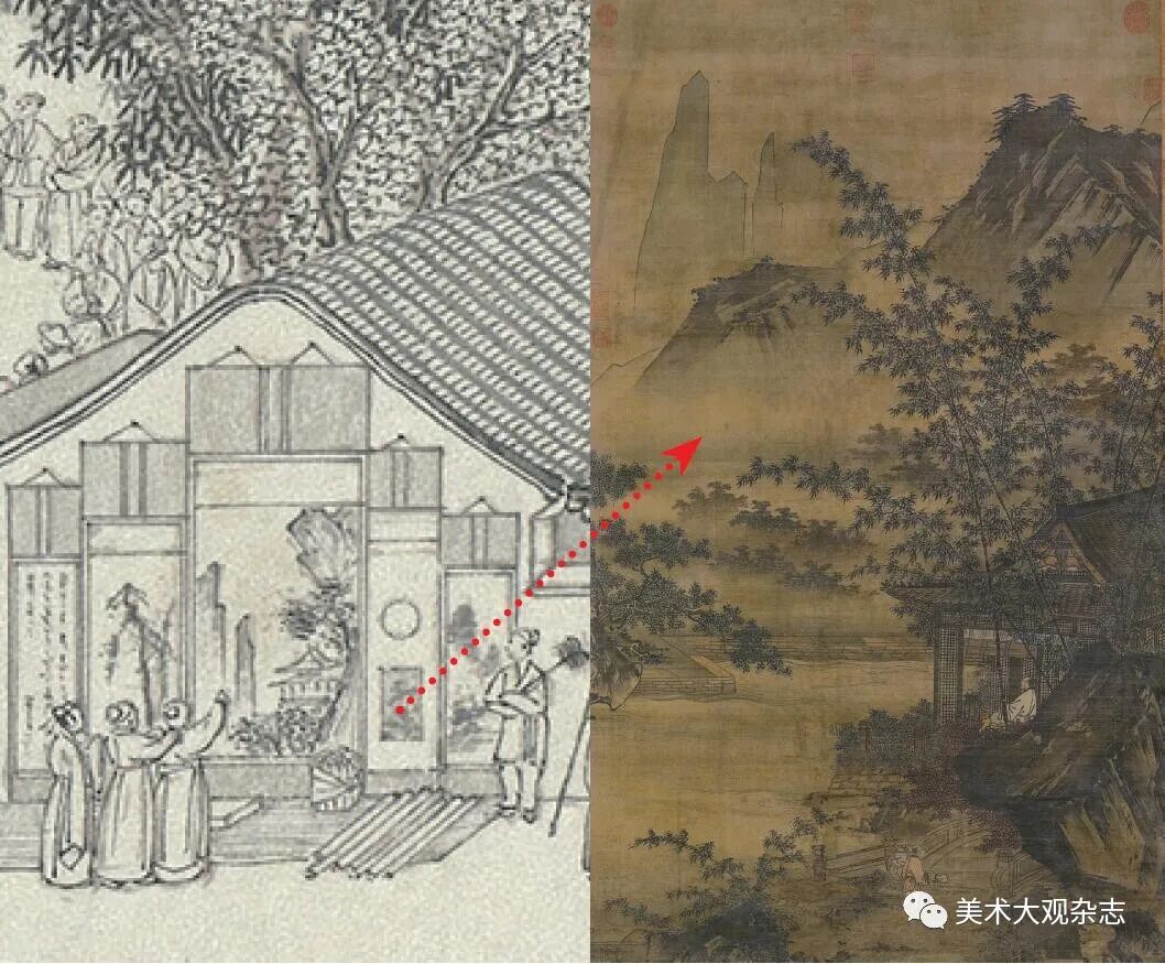 图 9ˉ 左:清沈源《清明上河图》(局部);右:传宋人《水亭琴兴图》,台北故宫博物院藏