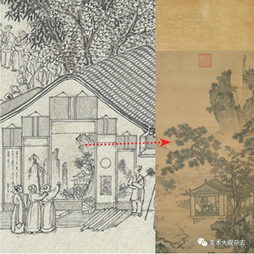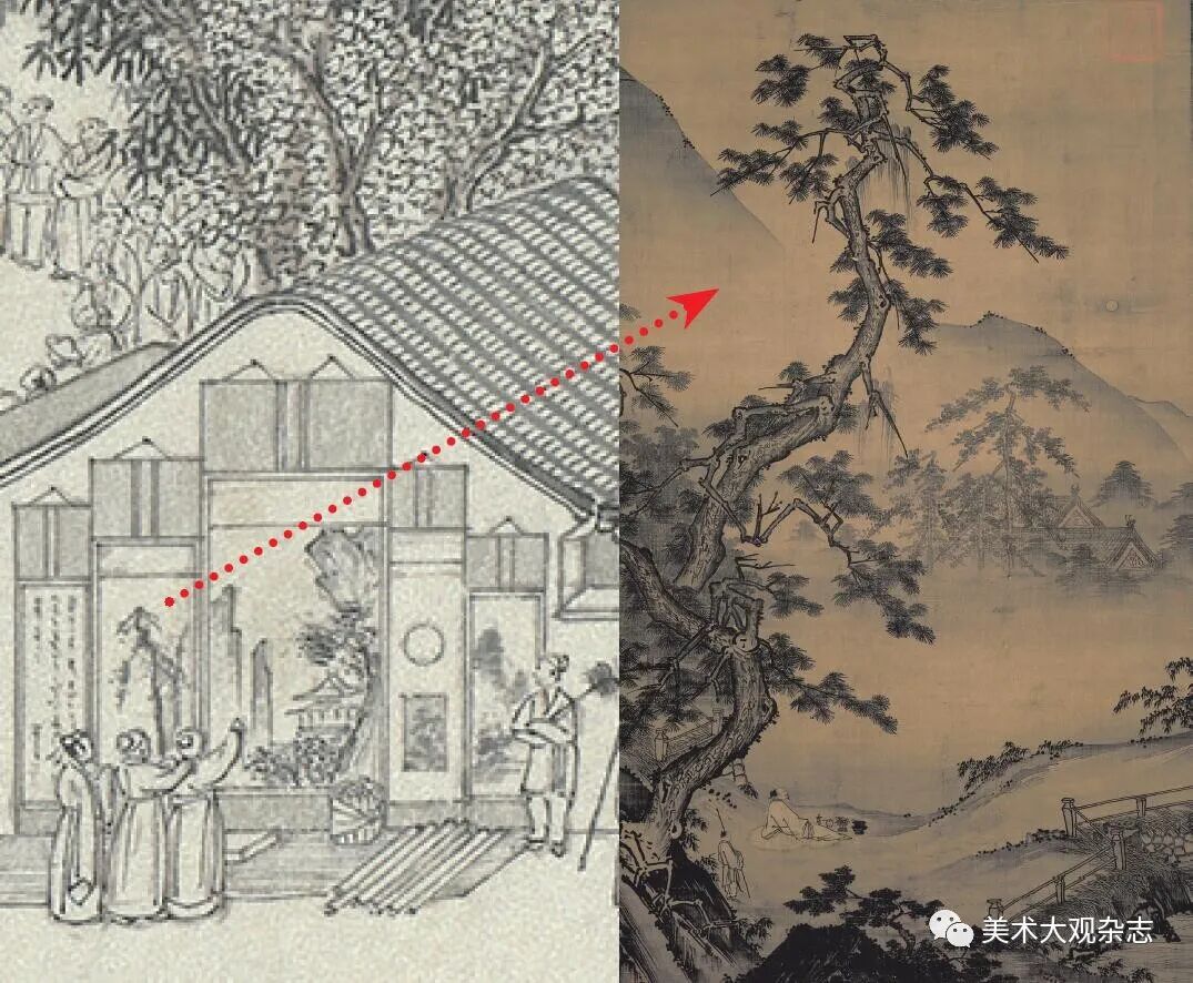 图 7ˉ 左:清沈源《清明上河图》(局部);右:传宋人《松月图》,台北故宫博物院藏