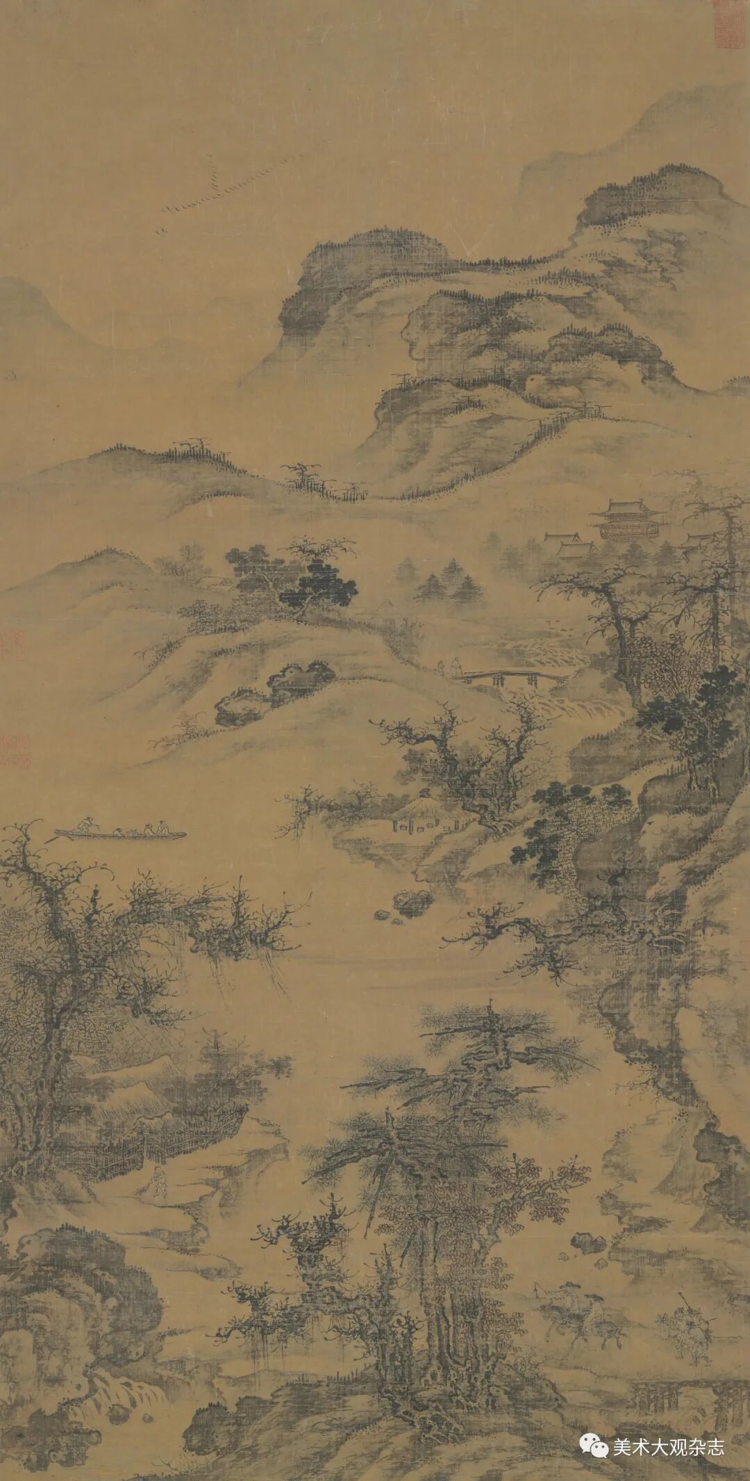 所以,浙派真的消失了吗?晚明以后,由于文人文化的论述,浙派也许渐渐淡出画坛的主流文字论述,但是它并没有在晚明激烈的“雅俗”之战中消失,直到今天还继续活跃于庙宇装饰等民间舞台上。晚明董其昌等文人的论述对于浙派与其风格根源批判之激烈化,其所映照的现实面向是:浙派不仅继续活跃在各种版画、画谱出版等晚明视觉文化中,更在晚明之上下阶文人、商贾、贵族等热衷追求重建古代谱系的赏鉴文化中,大量被化身为北宋的挂轴与南宋的册页。如若对其进行更细致的分析,将让我们看到晚明所谓“复古”所要追求之“古代”谱系的多元与复杂,绝非董其昌正统派之南北宗系统的古代观可以概括呈现的。更重要的是,在文人的主观论述压力下,浙派非但没有成为过去,其画风还深具活力地远渡重洋,影响力扩及日本与朝鲜的画家。日本与朝鲜从13世纪开始,便透过陆上与海上贸易的方式,大量输入浙江地区的马远、夏圭风格作品,让浙派传统于海外扎根发展。到了十五六世纪,更透过互派使臣与画家间的往来,与明代浙派接轨。浙派与日本、朝鲜的互动及其海外的繁衍分支,可说是具体而微地见证了东北亚文化圈紧密互动的最佳案例,而这部分的故事,也是浙派生命史中重要的一环。[71]到了20世纪,名字被消失的浙派作品,在中国与国际接轨、宋画渐渐回到文化精英的论述中时,又再度以“宋画”之名借壳上市,流通于展览与全世界各大博物馆中。也就是说,浙派不但从来没有消失过,而且不断地在不同时空中,参与构建着我们所以为的“古代”画史。而这些构建,在经过了晚明藩王贵族的赞助、唯利是图的古董商人的附会,以及清宫《石渠宝笈》的体制化后,到了20世纪,已经是一层层黏着叠附的混沌物,“古代”的形貌因而显得模糊而不可分解。倘若我们真的要看清楚“古代”是什么,尤其是究竟哪些才是真的“宋画”,那么对于浙派更为广泛而深刻的理解,必定是剥析与厘清古代画史最关键的道路。