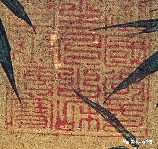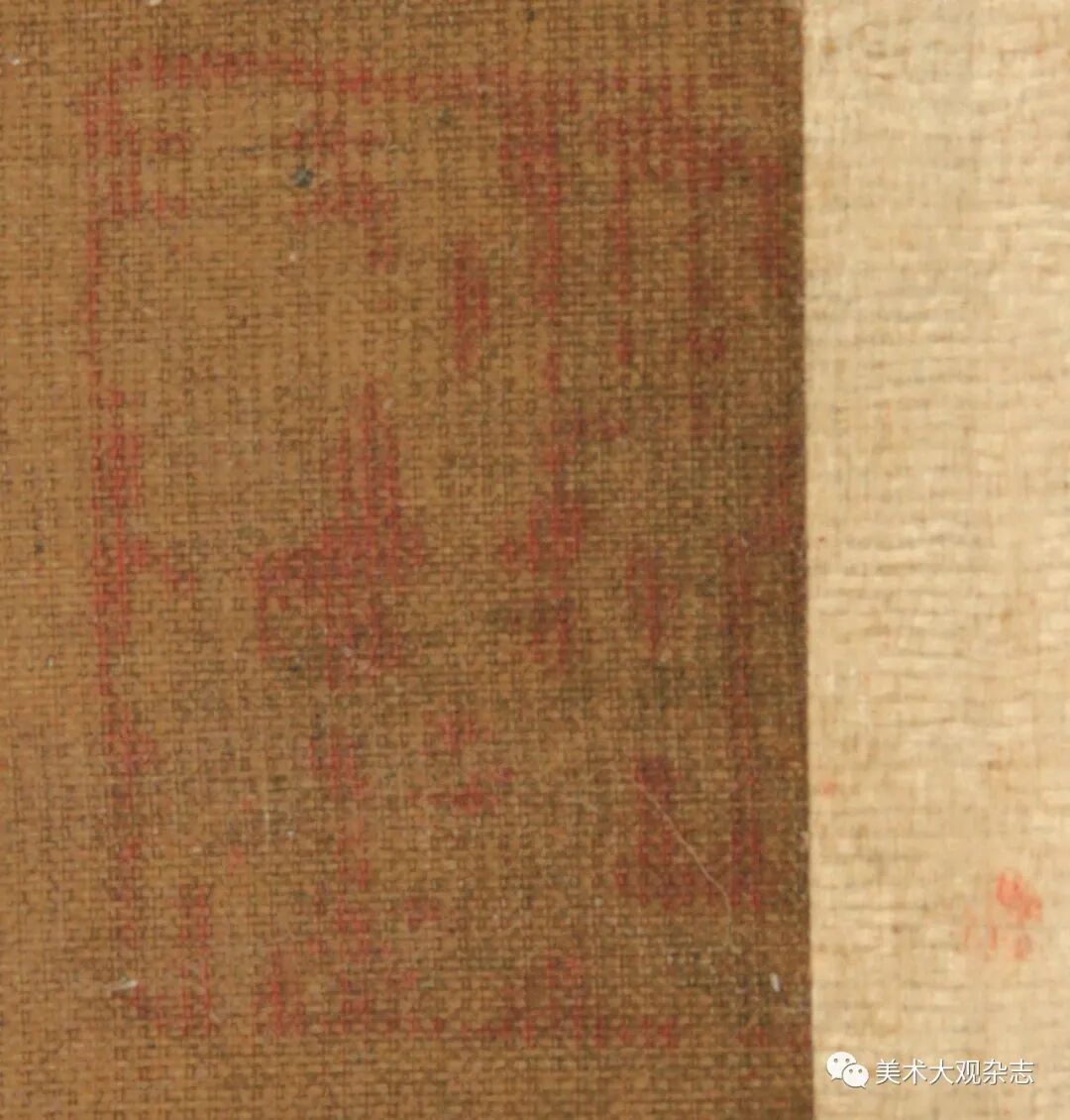 尤其两者描绘石块,皆以强而有力的曲折浓墨粗线勾勒轮廓,再以轻笔擦画蛛网状皴纹表现质地,虽繁简不同,笔法似乎颇为一致。之前学者虽然同意此作与吕纪的关系,[39]但是多认为其笔法较为狂放,加之以石上苔点加染石绿的做法,当为晚明时的作品。[40]然而,很令人兴奋的是,经特殊摄影后,我们发现绘于右幅的石块上有一“四明吕廷振印”之残印,与台北故宫博物院藏另两件吕纪作品中所钤之印非常一致,因此,此画为吕纪作品应该无疑。至于“南院枢密使政萧瀜恭画”之款题与萧瀜之印,则应为后加伪款。[41]