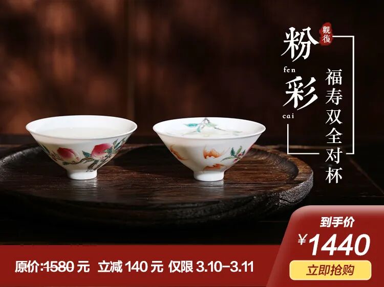 3月10日-11日,观复粉彩福寿双全对杯,限时特惠中~