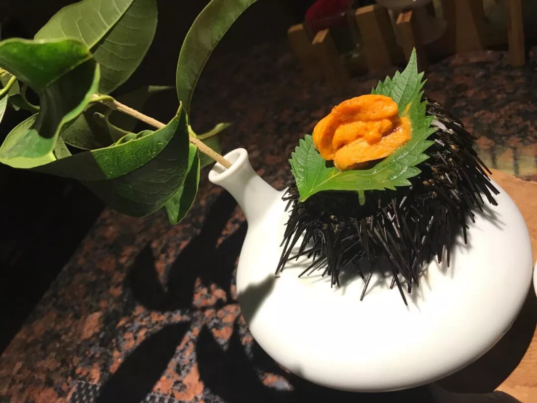 海胆也是辽东湾的招牌海鲜,它正应了“坚壳之下,必有美味”——尖刺硬壳包裹的“海胆黄”肥嫩鲜美。辽东湾的海胆以紫海胆为主,在“海胆圈儿”,一年四季都能尝到的马粪胆和紫海胆比起来,根本就不是一个量级。如果你是一个地道的大连人,一定知道:刺锅子这个称谓只属于长刺的紫胆。首先:外形上秒杀,紫海胆是马粪胆的2.5倍。其次,气势上镇压,因为口味鲜甜,许多人喜欢直接生吃。吃的时候需要搭配适当的作料,让芥末和酱油做的调味汁充分浸透到海胆里面后,才可用小勺食用。细腻的品食中,浓香流转在舌齿间,久久不忍下咽。直到吃完,鲜美与滑润仍久久的留在味蕾的记忆上,挥之不去。