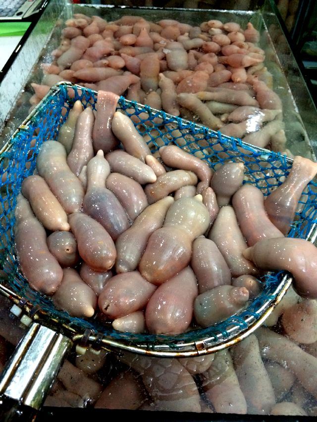海肠,胶东渔民称“海鸡子”,这种海鲜虽然外地也有,但以品质而言,渤海一带出产的最好。长相奇丑无比,入口却是倾国倾城。在有些地方人们把它叫做“裸体海参”,海肠不光长得像裸体海参,其营养价值比起海参也不逊色。