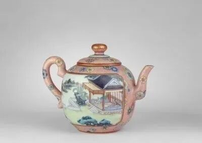 清代瓷器茶壶造型虽然也是继承了宋元时期的,但是器形改变很大,比如腹部鼓了,茶壶器形大了,而且壶盖和壶身融合的更紧密了,这一切的改变都是为了阻止散热,让茶壶更保温。