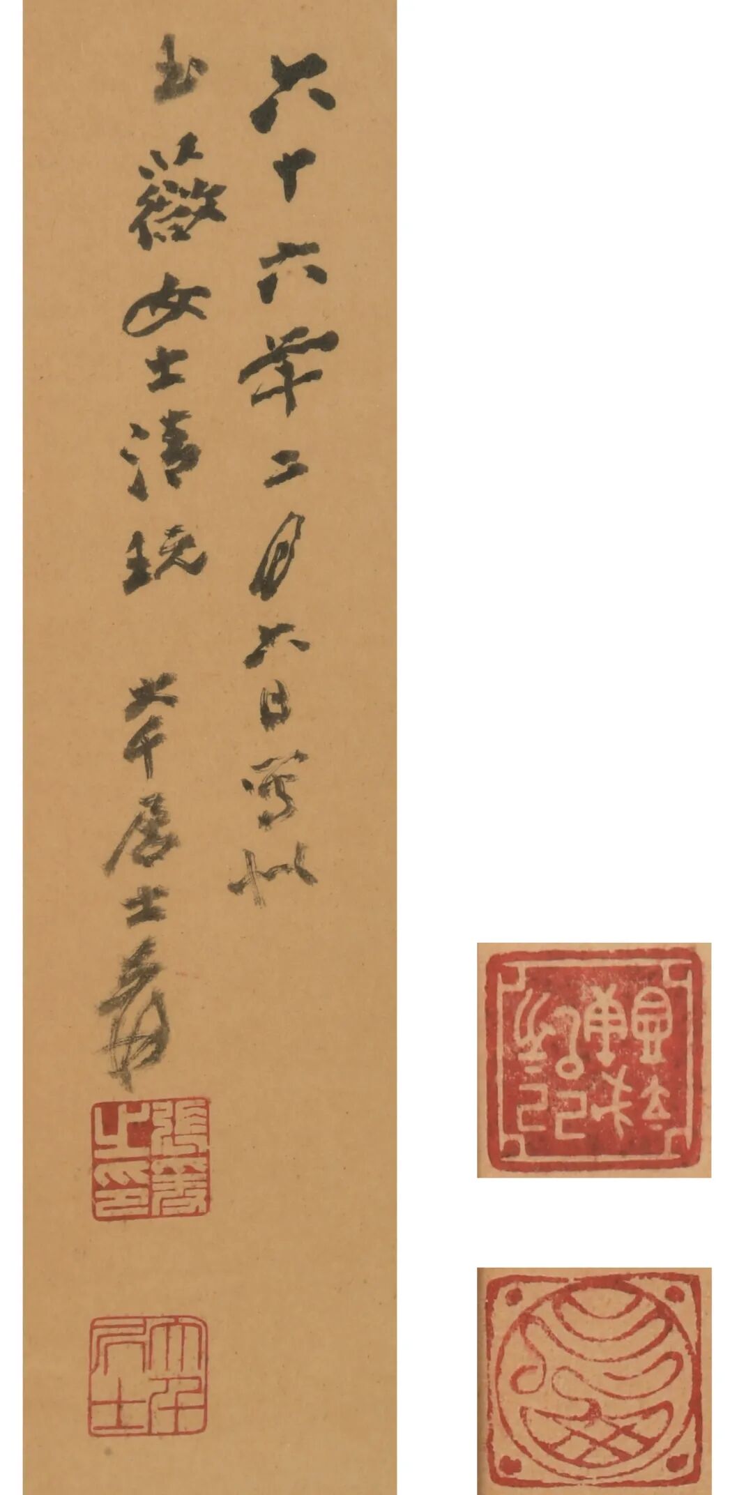 来源:来自新泽西的 Choi 夫妇,Choi 夫人是台湾著名言情小说家,笔名严沁。她自60年代起,出版过数十部言情小说,风靡中港台两岸三地,多部作品被改编为影视剧。款识:六十六年二月六日写似玉薇女士清玩,大千居士爰钤印:张爰之印(白),大千居士(朱);丁巳(朱);己亥 己巳 戊寅 辛酉(白)张大千(1899年5月10日—1983年4月2日),原名正权,后改名爰,字季爰,号大千,别号大千居士、下里港人,斋名大风堂。四川内江人,祖籍广东省番禺。白玉薇,京剧旦角。与李玉茹、侯玉兰、李玉芝并称为中华戏校的「四块玉」。1949年以后她在台湾各剧团教戏,台湾的京剧女演员几乎都是她的学生。她后定居于美国加州。张大千是全能型画家,其创作达“包众体之长,兼南北二宗之富丽”,集文人画、作家画、宫廷画和民间艺术为一体。于中国画人物、山水、花鸟、鱼虫、走兽,工笔、无所不能,无一不精。中年后旅居海外,画风工写结合,开创了新的艺术风格。本件画面以意笔绘折枝花卉,布局规整,设色淡雅,于大千恣肆狂逸的画风中尤显清新雅致。画法上,以线勾勒枝干,柔中蕴刚,以色描画点叶,用墨华滋多变,敷色清新鲜活,自然成趣。没骨画法是不以墨笔勾勒,仅用颜色点戳,谓没骨法。没骨花卉一格,不同于勾线染色的工笔笔法,花卉以清妍艳丽为主,完全用颜色去表现,从而有更加自由的表现空间。大千花鸟早年即已写意为主,受石涛、八大等逸笔划风影响较大,中年时期力追宋人,工整谨严,设色艳丽,至晚年则多写意之作,以意驱笔,于优雅中求清逸,重追文人画之意趣。此画作是大千中晚期时候的成熟作品之一,虽为写意之作,但造型准确,花朵之大小疏密,枝叶的阴阳向背,信笔拈来,展现出张大千扎实的造型能力和娴熟的笔墨技巧。本件作品勾花点叶,小写意中尤见精致,设色淡雅清丽,整体布局简洁利落有不空疏单调,值得收藏的小精品。参阅台北国立历史博物馆馆藏,编号75-03576。中国嘉德拍卖2013年11月秋拍,编号0570;苏富比香港2019年10月拍卖,编号2863;苏富比香港2013年4月拍卖,编号1316。