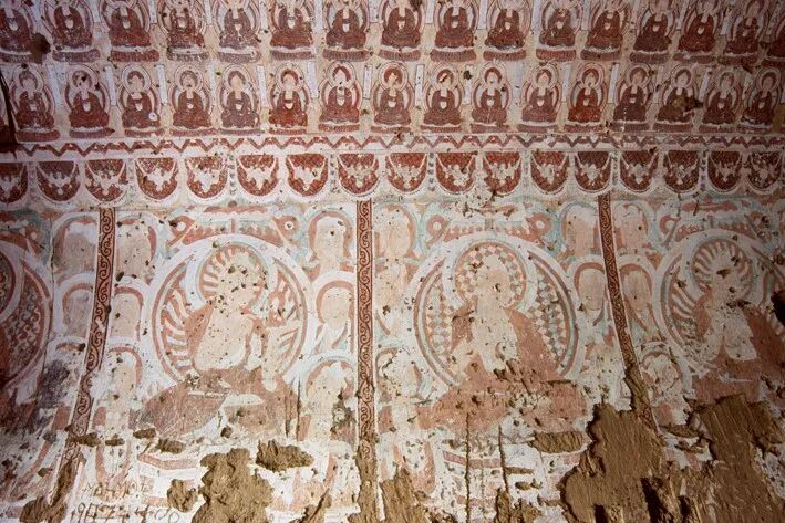 克孜尔石窟以独特的洞窟形制和壁画风格,明显揭示出佛教经西域地区由西向东的传播轨迹,以及在传播过程中所形成的本土化过程,成为丝绸之路上最重要的佛教遗迹之一。公元前后佛教文化在龟兹繁荣发展,世界著名的三大佛经翻译家鸠摩罗什就出生在库车,曾远行内地传播佛教艺术。自汉代开始经魏晋南北朝隋唐时期,是龟兹吸收印度佛教文化形成本地灿烂的民族文化时期,在4-8世纪时期达到辉煌的顶点。唐朝高僧玄奘返回时,在龟兹传经、讲学居住数月,使龟兹文化与佛教文化融为一体。克孜尔尕哈石窟是距离龟兹都城伊罗卢城最近的一处石窟群。共编号洞窟66个,分布在五个单元组合内。这些洞窟开凿的年代比较集中,大致可分为两个时期,前期为公元6~7世纪,后期为公元8世纪以后。第13窟和第14窟的供养人画像中出现了地神“坚牢”托举龟兹国王和王后的形象,为龟兹石窟所独有。根据国王和王族供养像及龟兹文题记判断,这里应是龟兹王室寺院。洞窟形制以中心柱窟为多,壁画题材内容主要有本生故事和因缘故事等。本生故事以大幅画面绘在中心柱窟甬道侧壁,为龟兹其他石窟所少见。克孜尔尕哈千佛洞第30窟后室顶部的伎乐飞天造型优美,是龟兹石窟中保存完好的艺术品。在蔚蓝的天空中,翱翔着八身美丽的飞天,画面中间用联珠纹饰相隔,将飞天分为两排,每排四身。中央的两身相对而飞,两侧的前后相随。这些飞天有奏琵琶的,有吹排箫的,有弹竖箜篌的,有吹横笛的,有托盘散花的。飞天的体态轻盈,披帛飞扬彩裙飘荡。天花、宝珠、遍满虚空,显得满壁风动。这种大型飞天群是克孜尔尕哈石窟壁画中的精品。克孜尔尕哈烽燧始建于汉宣帝年间,即西域都护府移设乌垒之后,是汉代的军事设施。是新疆现存历史最悠久、保存最完好的一座夯土建筑的烽燧遗址。森木塞姆石窟是开凿时代较早,延续时间长的一处石窟群。它又是现知古龟兹境内最东边的一处石窟群,在佛教及其艺术的传播和发展中,曾起到中介作用。尽管它的洞窟数量没有克孜尔和库木吐喇石窟那样多,但却囊括了龟兹石窟艺术发展的全过程,拥有较多受到印度、希腊等外来影响和当地龟兹、吐蕃、回鹘等各种民族文化元素荟萃的壁画艺术,对了解和研究佛教及其艺术的传入,龟兹佛教的发展,佛教石窟艺术的演变及其社会背景有着重要的意义。第44窟主室券顶右侧 频毗娑罗王皈依 图源龟兹研究森木塞姆方形窟中最有特点的是所谓的“莲花套斗顶”,不是仿木构方形套叠的“斗四”,也不同于一般圆形的穹窿,而是以花瓣围成的弧边八角形的空间层层相错叠套,中间起一穹窿,形成倒垂莲花式的窟顶,尤以第4、13和第15窟最为明显。在龟兹石窟中,只有在森木塞姆石窟出现了这种窟形,当是穹窿顶的发展或变体。此外,中心柱窟后甬道开明窗也为龟兹其他石窟所罕见。库木吐喇千佛洞现遗存约3000平方米的壁画及部分塑像残迹,是佛教文化在龟兹地区繁荣和发展的见证。不管从壁画题材内容、艺术风格,还是附近遗址所出土的文物等方面都较完整地反映了公元5世纪至13世纪间龟兹的政治、经济、文化和宗教的发展与变迁,也是中原汉传佛教回流对龟兹佛教文化发展产生深刻影响的最好见证。研修时间:新疆丝路艺术专题研修活动每季度均有安排,近期安排档期为四月班期和五月班期。默认第1天晚上自行抵达乌鲁木齐指定酒店自助入住,第10天下午15点前送至龟兹库车机场散团。课程分级:本期培训课程内容以丝路艺术深度研修为主,原则上年龄10岁以上的参与者均可,默认满6人开班。要求身体健康并有自理能力。15600元每位(10天9夜)。费用包含默认指定特窟费用,不含单房差2000元每位,不含额外的加床费用,不含其他未标明的个人消费。1.费用默认包含全程行程内的吃住行、门票、保险、导师服务等基本费用;默认拼房入住四星酒店双人含双早标间,不包含单房差费用,最后一名报名者若不能拼房的须补齐单房差。2.费用不含个人消费;不包含来回大交通费用;门票只包含进景区的门票和部分讲解费用,不包含内部个人娱乐活动等消费。3.活动开始前15天截止报名,或额满提前截止,请尽早报名;满6人或3组成行,未成行全额退款;活动开始15天内取消报名的退款50%,7天内取消的费用不退。活动若因疫情无法开展的,将全额退还学费。4.行程安排因景区临时不开放等具体原因会有所调整,请依据最终的行程清单或者相关合同中列举的行程为准。所有研学活动均由具有出入境资质的大型旅行社承接,并为所有参与者购买出行意外险。5.研学培训活动行程过程中,请参与者遵守当地风俗习惯和相关场所的规章制度,非允许拍摄的区域请勿拍摄,否则组织方有权拒绝参与。