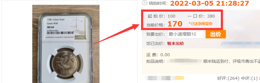 以1981年长城币1元为例,这两年涨幅就很明显,从前年的40元左右/枚,现在已经涨到70+了。而且,品相好的评级币价格更高,目前还没有截拍的价格就已经达到了170元~