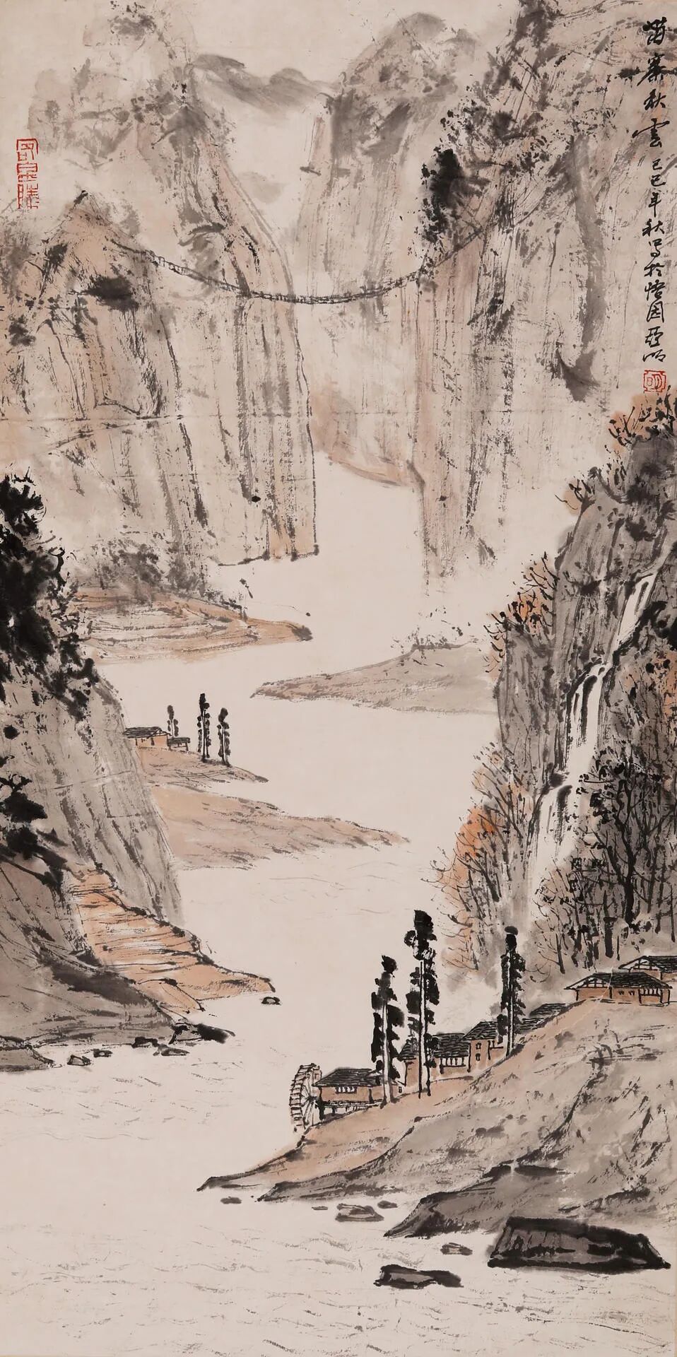 题识:苗寨秋云。己巳年秋写于悟园亚明。