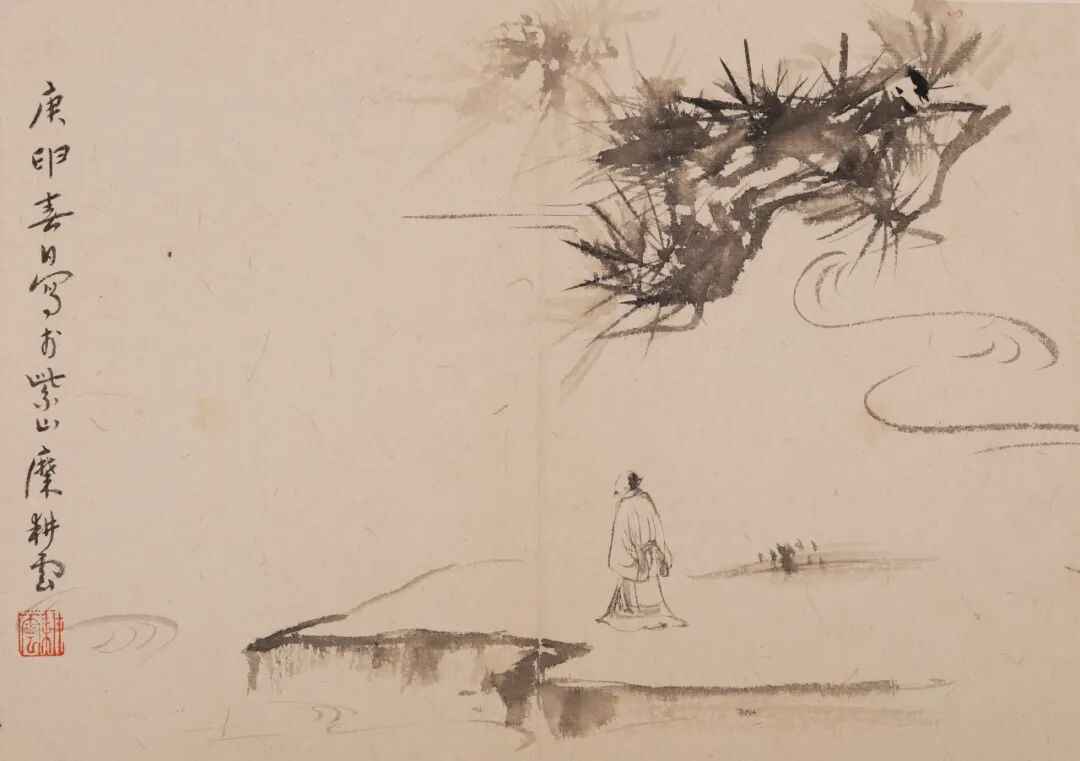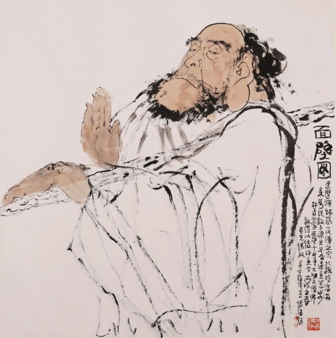题识:面壁图。丙戌之春吾兄韩敏于古龙华寺,韩伍题。