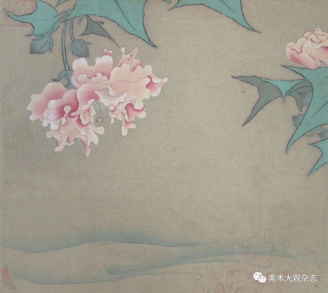 这种禅宗式的艺术鉴赏也体现在宾扬对中国画的解释。譬如在《远东的绘画》中谈到李迪《芙蓉图》时,宾扬除了称赞该图布局完美、设色艳丽之外,还称赞“中国艺术家透过花卉引领我们去冥思,从中将生命中一些无实际功用的美丽之物植入我们的灵魂”。[66]对于楼观的《芙蓉图》,他是如此描述这幅画:“一朵花从画面(左)上方垂下,这朵花的朦胧印象在(右)下方的水波中反射出来,暗示出我们目光不及之处,仍有很多(花瓣)。”[67]