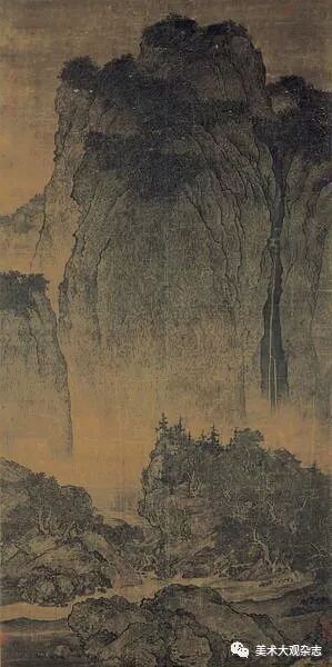 然而,当今中日和西方艺术界出版的有关中国美术史的著作,绝对不会将南北宋画风混为一谈,这点从台北故宫博物院于2000年和2006年举办的两个大型宋代书画展中便可一窥端倪,这两个展证明两宋代表的是两个时代、两种绘画风格。[19]就绘画而言,北宋是文人书画确立的时代,以苏东坡和米芾为首的文人树立了以书画为中心的艺术观,致力于开创出一种把诗文书画融为一体的画风。而李成、范宽、郭熙等宫廷画家,则好用淡墨,多画郊野平远旷阔之景,笔法简练,气象萧疏,故这些华北系画家笔下的山水多半是宏伟壮观、气象森严的全景山水。像范宽《溪山行旅图》就是一个范例。此画以浅淡的色彩作极为精致的构图,举凡山川流水,高山岩石,都能细心勾勒且呈现出立体的空间感,给人感觉就是气势雄伟的巨峰几乎占据了整个画面,山头杂树茂密,飞瀑从山腰间直泻而下,山脚下巨石纵横,在山路上出现一支商旅队伍,路边一弯溪水流淌,正是山上流下的飞瀑,使观者如闻水声、人声、骡马声,在点出了溪山行旅主题的同时,也使观者对大自然的威力肃然起敬。