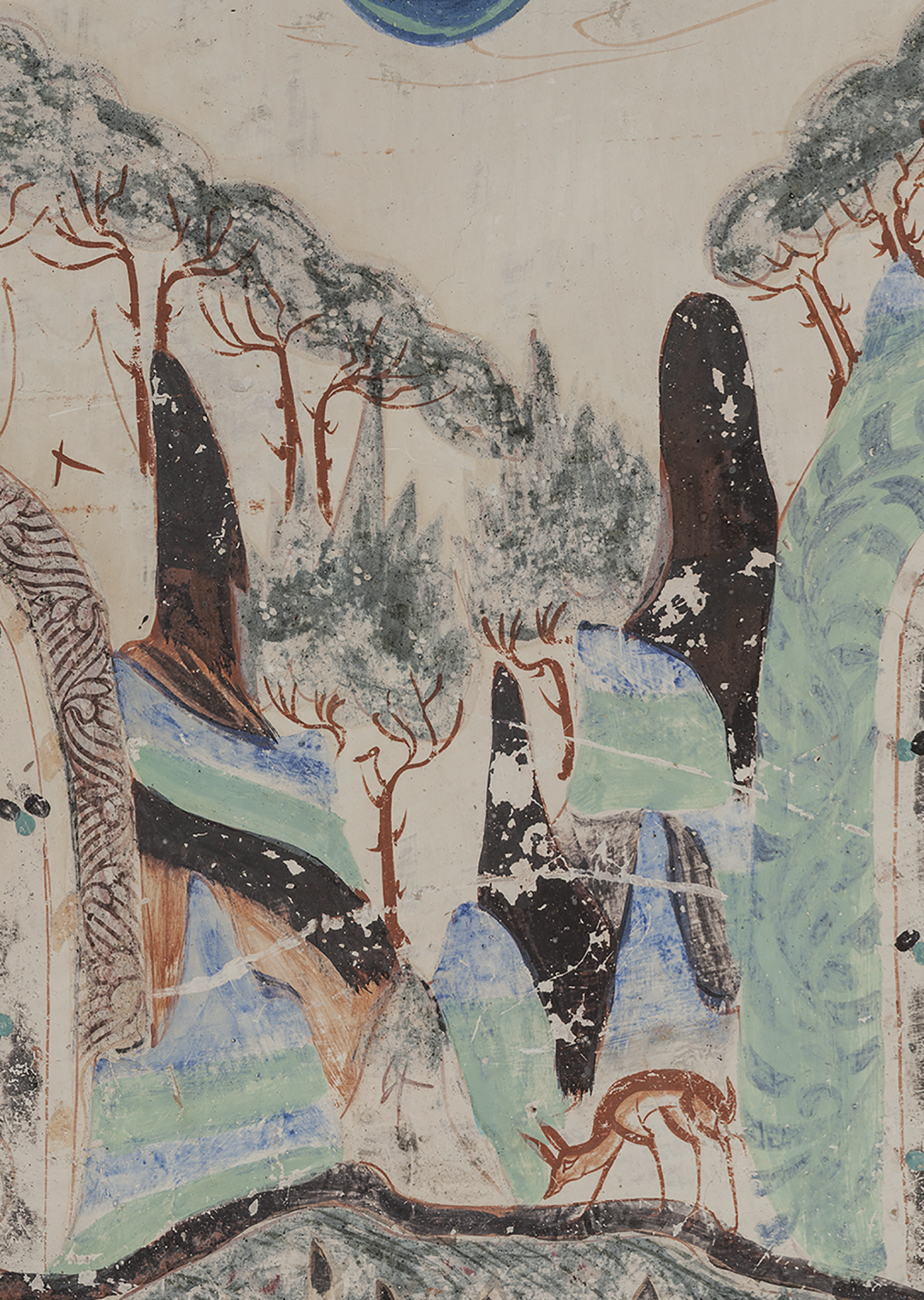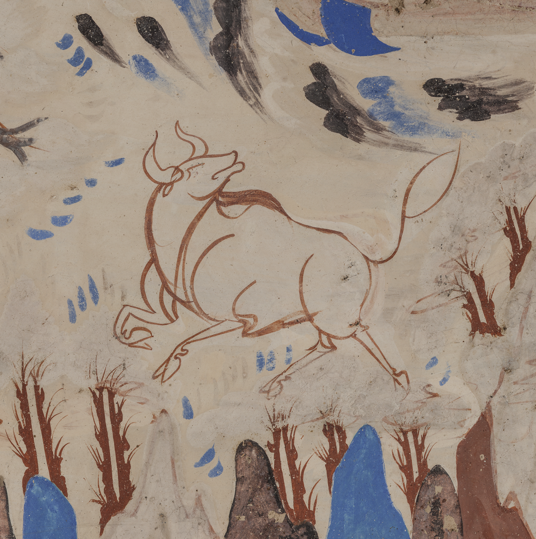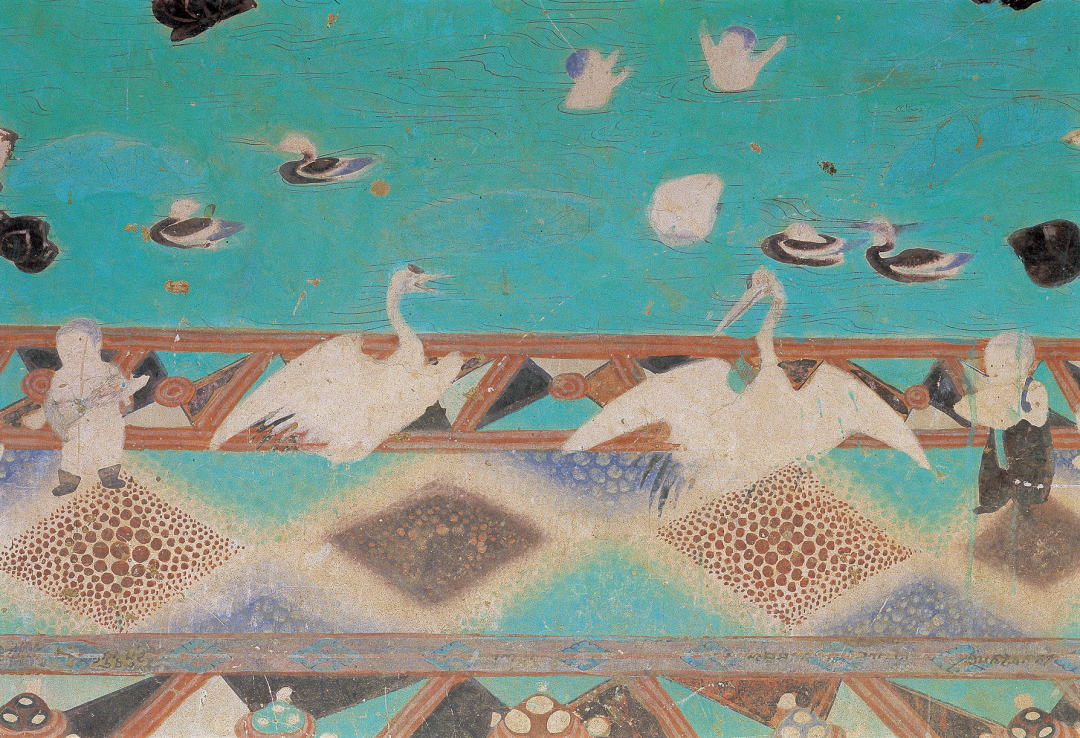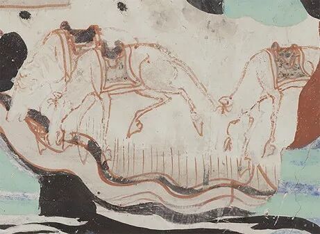 敦煌石窟的动物图像是以佛教内容为中心,描绘来自中原、西域的众多飞禽走兽,以及神话传说中的神瑞动物。它们在壁画中或出没于山林、或翱翔于云天、或潜游于水中。画师不仅刻画其形体之优美,动物形象还被赋予丰富的含义,因此在敦煌石窟中,动物图像一般不独立构成画面,基本依附于宗教题材内容作为重要的装饰元素出现。