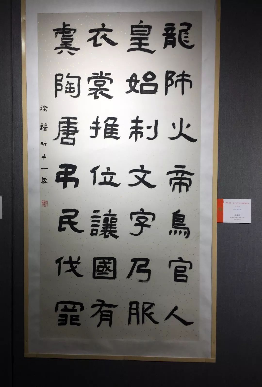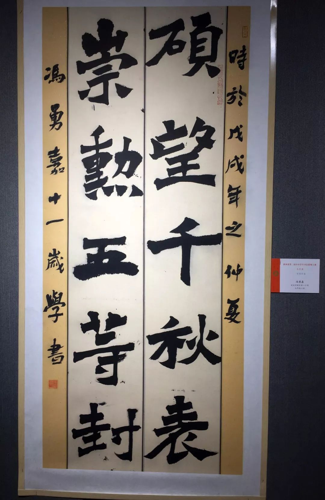 小孩写得巨幅单字,