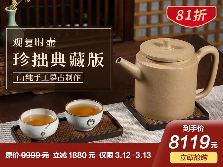 观复博物馆以馆藏【明晚期时大彬款紫砂壶】为原型,1:1致敬复刻出了【典藏版观复时壶·珍拙】。