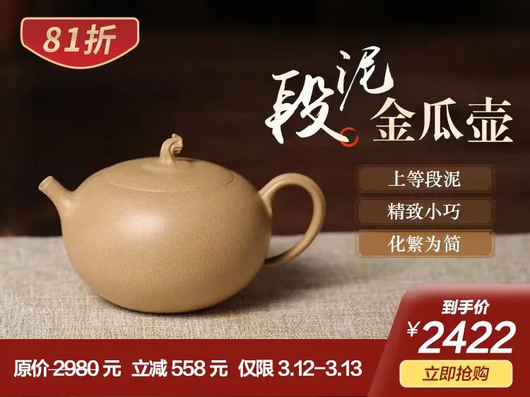 此段泥金瓜壶,3月12-13日,限时优惠中。