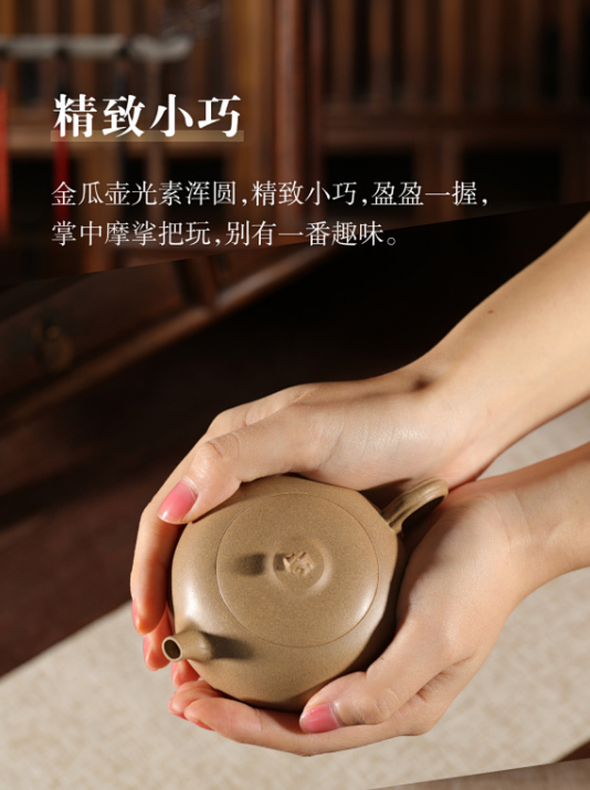 金瓜壶光素浑圆,精致小巧,盈盈一握,犹如刚从藤蔓上采下的小瓜。
