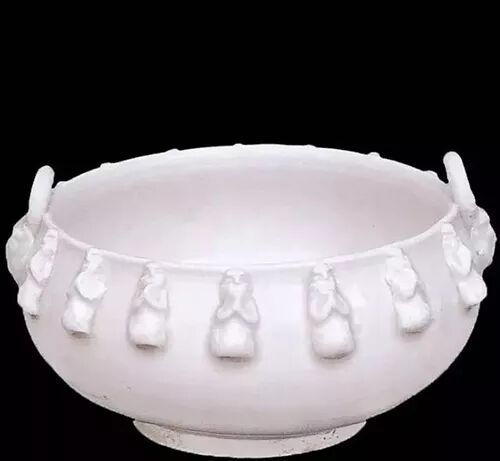 白釉贴塑人像双耳炉 北宋 高6.8、口径9.5、足径5.5厘米 1969年河北省定州市贡院内北宋太平兴国二年(977年)静志寺塔基地宫出土,现藏于定州市博物馆。