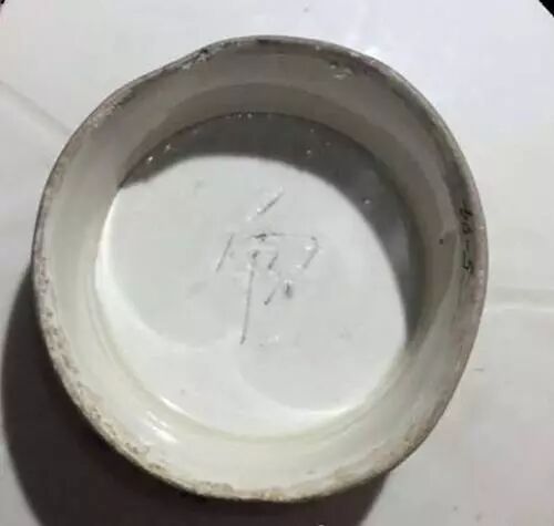 尖唇,折沿下斜,曲腹稍深,圈足外撇;器璧较厚重。胎色洁白,胎质细腻坚硬。釉白如玉,光泽明亮,施满釉,圈足露胎并有窑粘。足心划刻行书“官”字。造型稳重敦厚,美观大方。为河北定窑北宋初期产品。