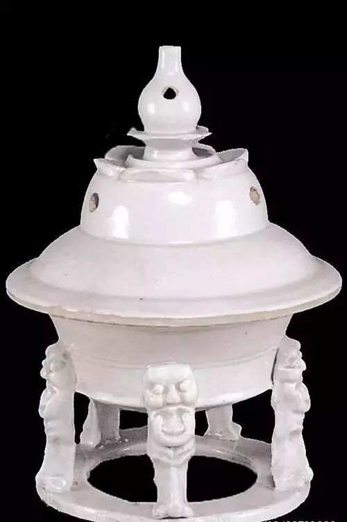 白釉五足熏炉 北宋 通高24.3、炉口径16.3、盖径17.6厘米 1969年河北省定州市贡院内北宋太平兴国二年(977年)静志寺塔基地宫出土,现藏于定州市博物馆。