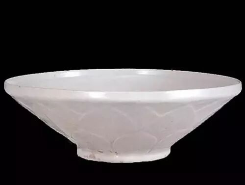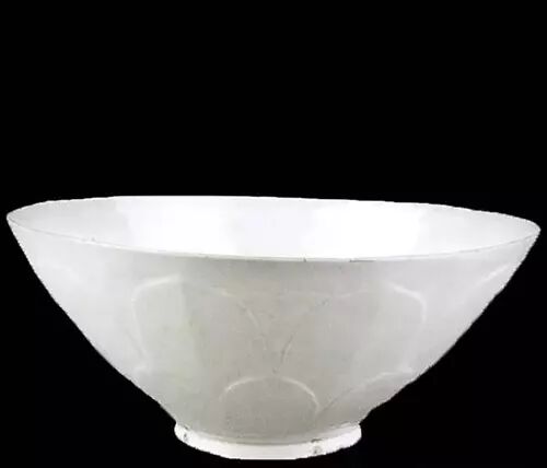 白釉花口碗 北宋 高10.2、口径25.6、足径8厘米 1969年河北省定州市贡院内北宋太平兴国二年(977年)静志寺塔基地宫出土,现藏于定州市博物馆。