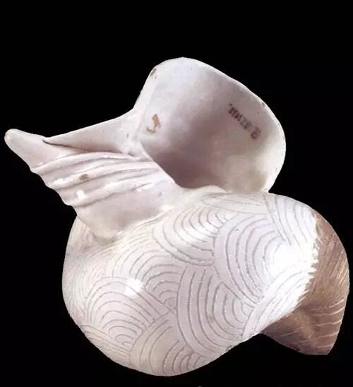 白釉划花法螺 北宋 长19.3、口长8.4厘米 1969年河北省定州市贡院内北宋太平兴国二年(977年)静志寺塔基地宫出土,现藏于定州市博物馆。