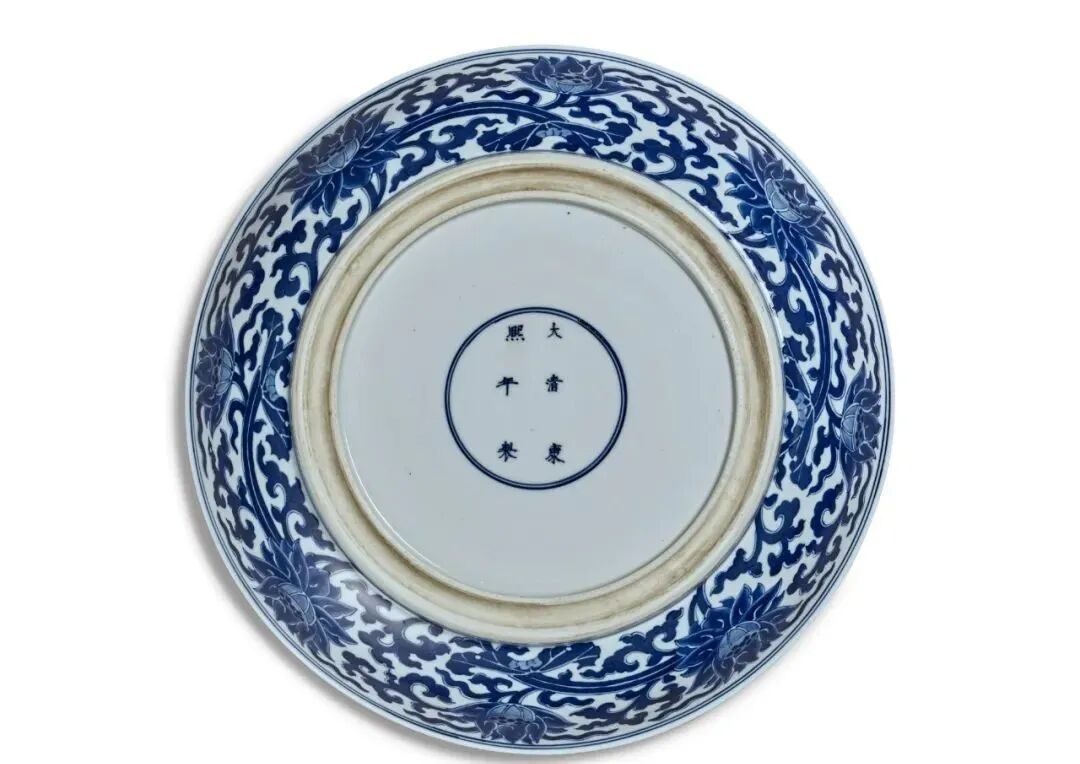 清康熙 青花缠枝莲纹大盘 《大清康熙年制》款