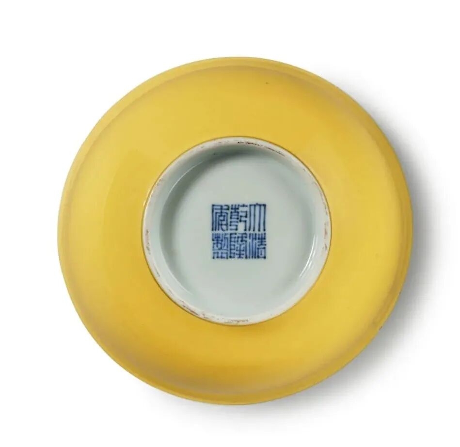 清道光 黄地粉彩牡丹纹碗《大清道光年制》款
