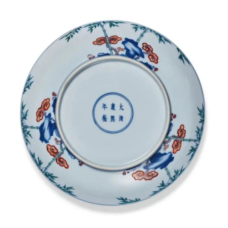 清康熙 五彩仙女祝寿纹小盘一对 《大清康熙年制》款